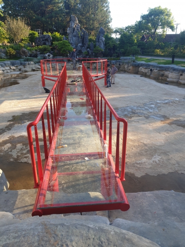 Cầu kính được thi công lắp đặt từ loại kính cường lực 15mm đảm bảo tính thẩm mỹ và an toàn trong quá trình sử dụng