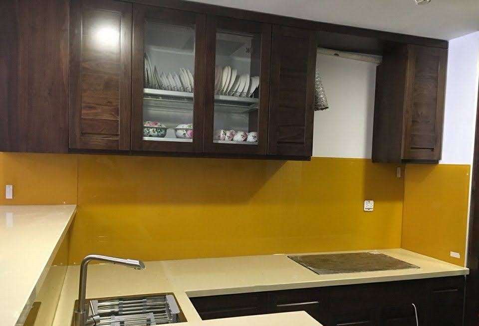 Công việc ốp kính màu cho bếp được thực hiện sau khi tủ bếp, bàn đá, hút mùi đã được lắp đặt cố định như vậy sẽ đảm bảo được tính thẩm mỹ của công trình