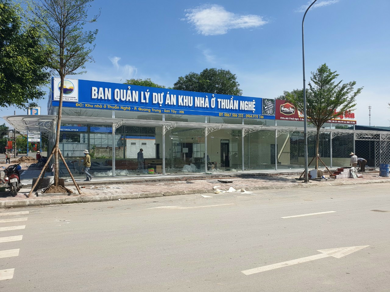 Vách và cửa kính cường lực mở quay